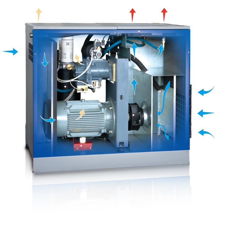 点击查看大图压缩机冷却系统由安装在主电机上的大排量风扇提供冷却风量,无需另装专门的冷却风扇,减少运动部件,降低故障因素,使机器运行更加可靠。